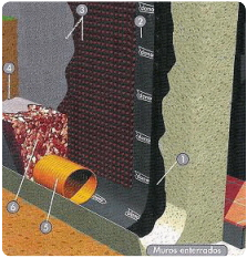 - Proporciona un drenaje permanente, evitando la aparición de la presión hidrostática sobre el muro y evitando el contacto directo de la humedad con el muro.